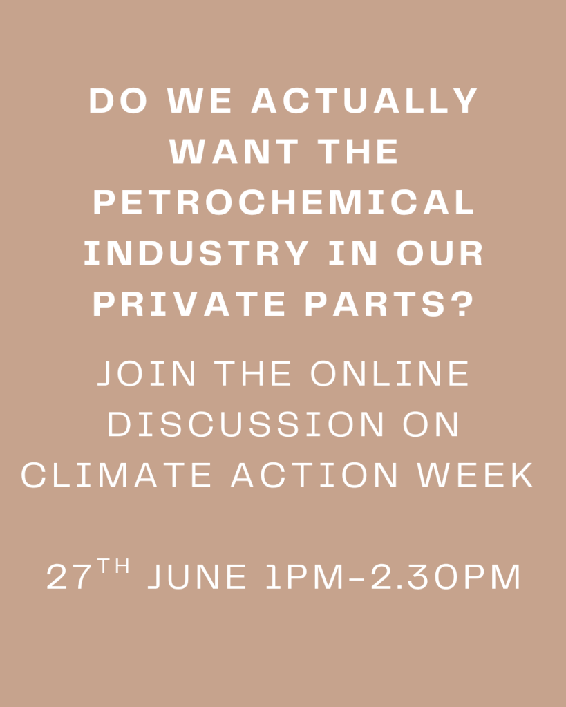 How did we get here? Well, we see the fashion industry, and feminine hygiene as separate from the oil and gas industry rather than an extension of it.